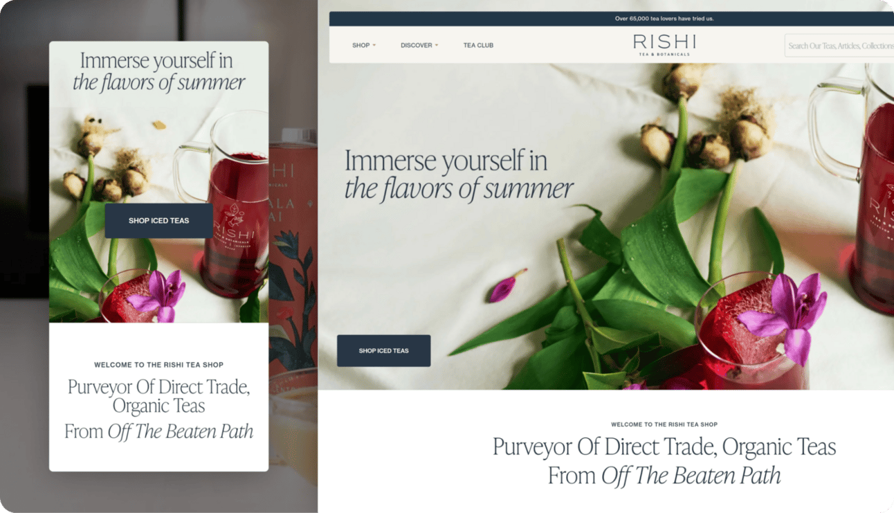 “Discover the Rishi Tea Store” was followed by a dense paragraph of brand exposition.