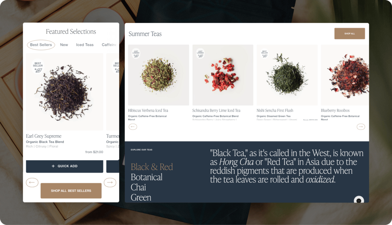 Instead of dropping users straight into a grid of products on the homepage, we tested leading with curated categories. Think: Best Sellers and Shop by Tea Type.