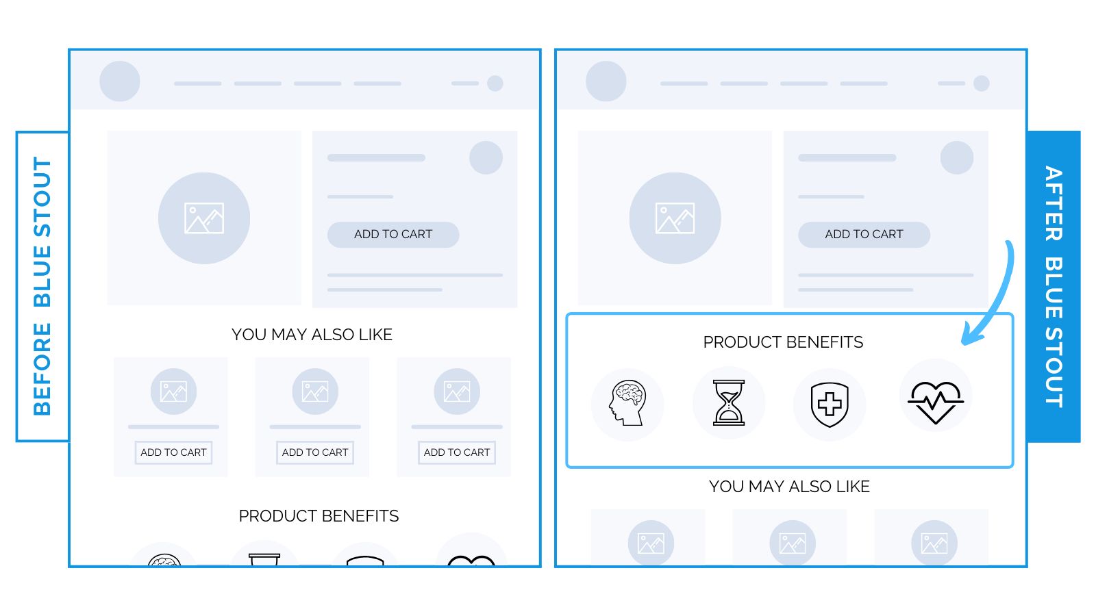 Before, other products were listed right below the Add-to-Cart section, with the benefits section further down.