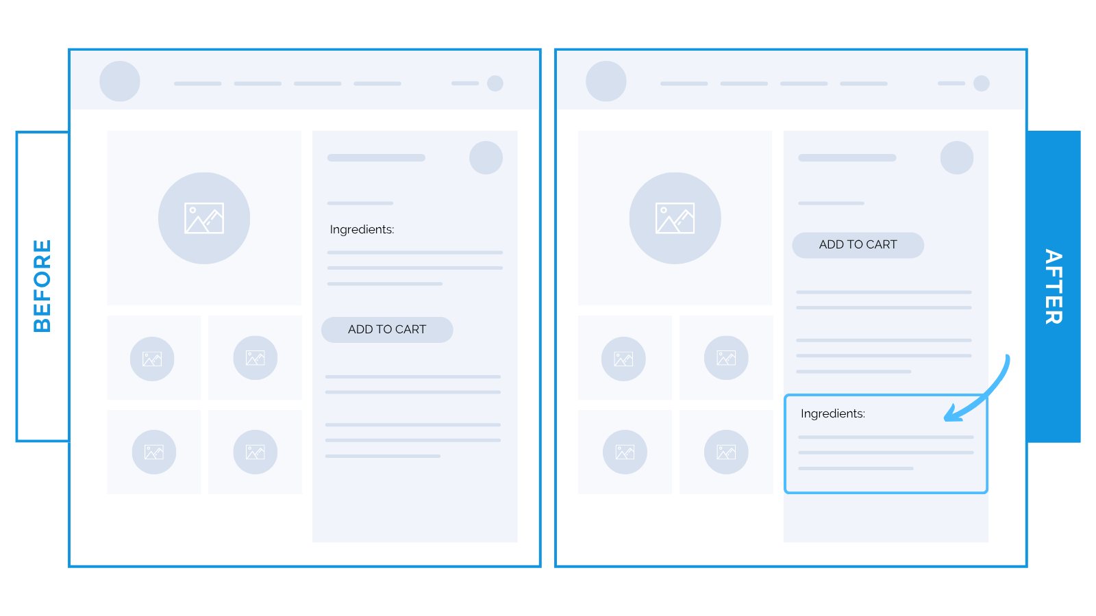 2) Supplement brand moved long ingredient details below the “Add to Cart” button.
