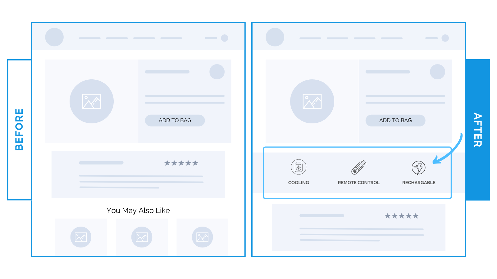 Features like “Cooling” and “Remote Control” were hidden below reviews. Great proof, but too late in the scroll.